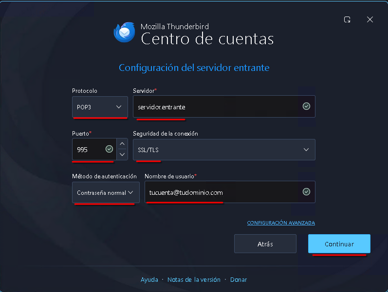 Configurar cuenta de correo en Mozilla Thunderbird