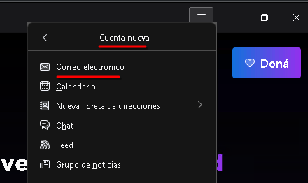 1. Agregar cuenta: Abrí Thunderbird. Hacé clic en el menú (tres rayas) y seleccioná Cuenta nueva > Correo electrónico.