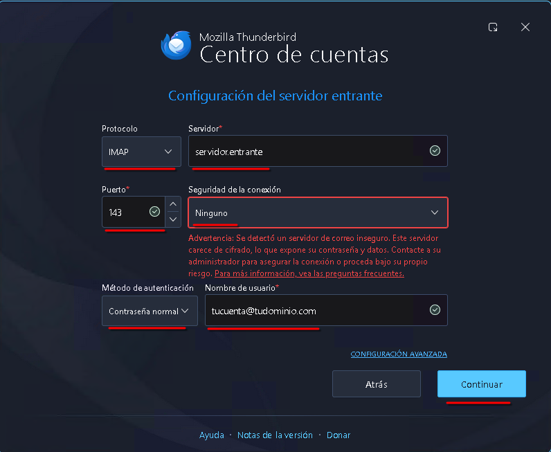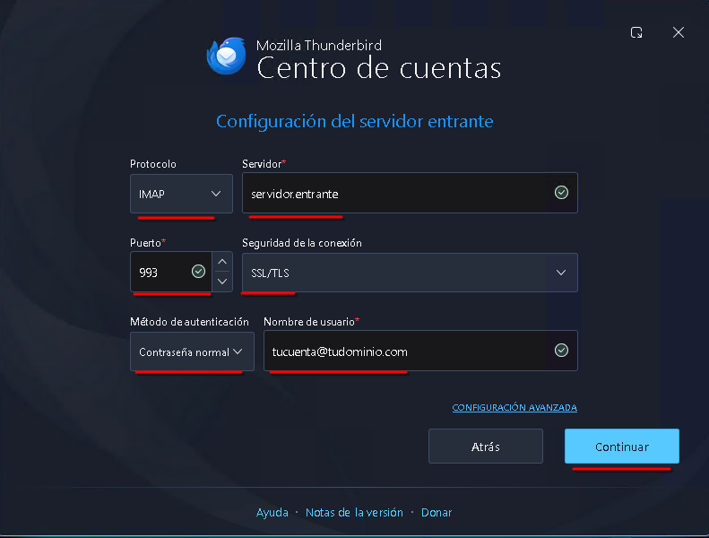 Configuración IMAP (Recomendado)