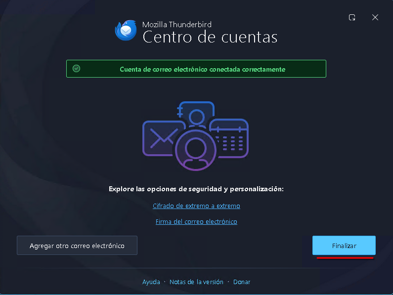 ¡Listo! La cuenta está conectada. Hacé clic en Finalizar para empezar a usarla.