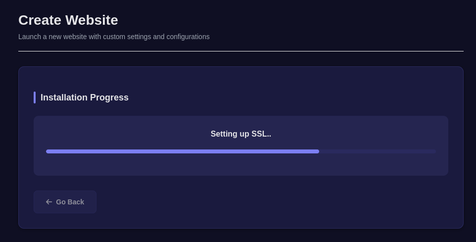 Sobre el Paquete (Package): Si al intentar crear el sitio no encontrás ningún package, debés crearlo primero en Packages > Create Package (columna izquierda).