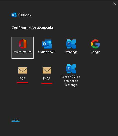 2. Tipo de cuenta: Cuando el sistema te pregunte por el tipo de cuenta, seleccioná POP o IMAP.