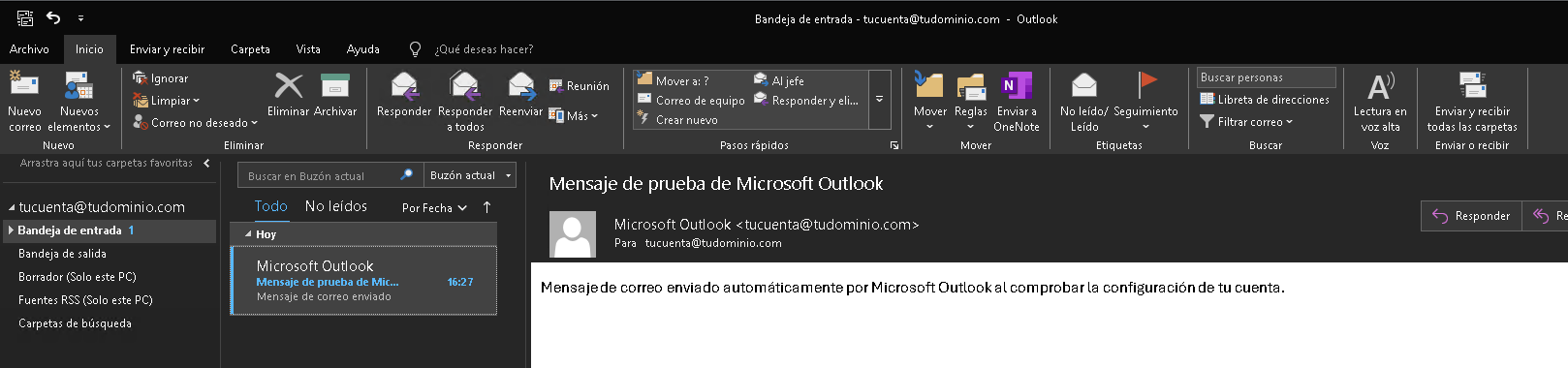 ¡Listo! Outlook Clásico comenzará a descargar tus correos en la bandeja de entrada.