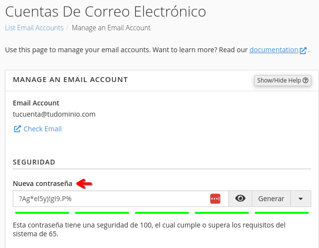 3. Nueva contraseña: Dirigite a la sección Seguridad. En el campo Nueva contraseña, ingresá tu clave nueva. También podés utilizar la función Generar para obtener una contraseña aleatoria de alta seguridad.