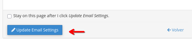 4. Guardar cambios: Desplazate hasta el final de la página y presioná el botón azul Update Email Settings.