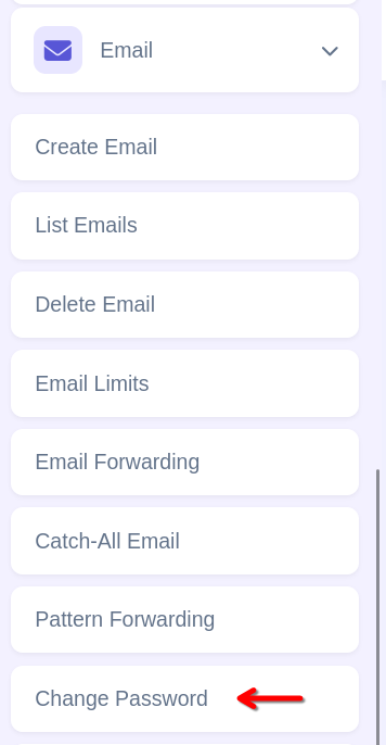 1. Acceder al menú: En el panel lateral izquierdo, desplegá la opción Email y hacé clic en Change Password.